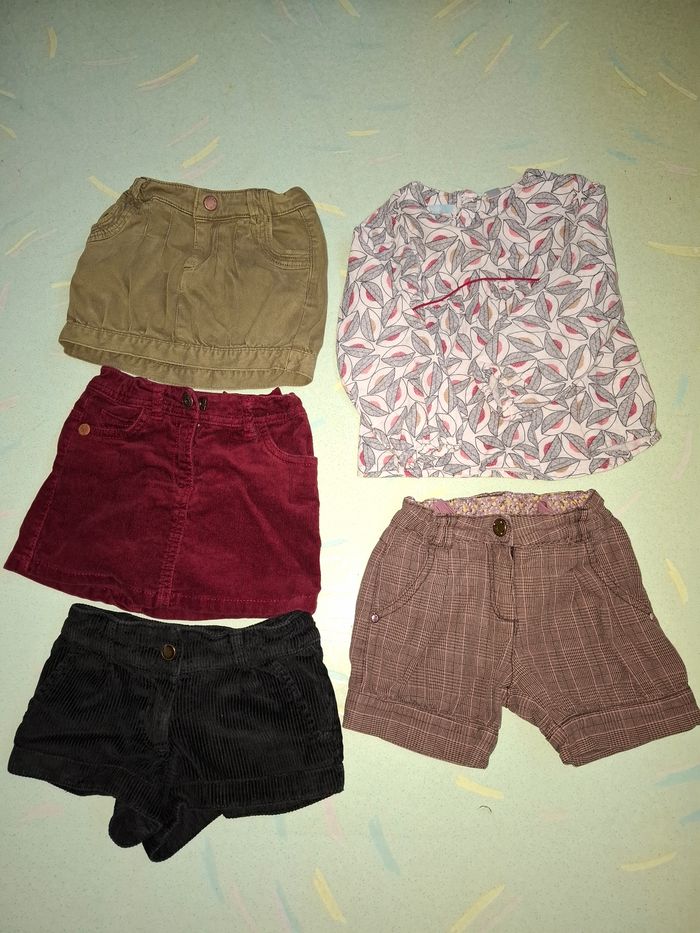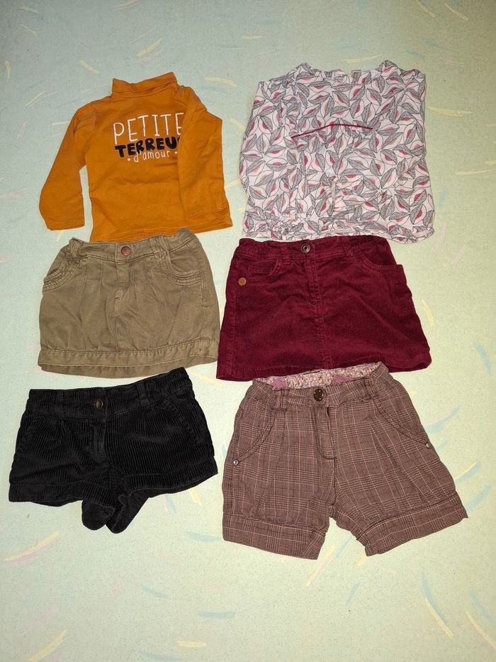 Lot pour fille 2 ans. 2 jupes 2 shorts 1 blouse Prix 8€ le lot