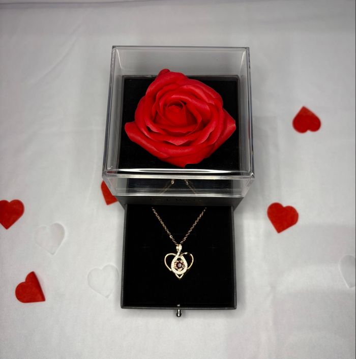 Boîte Rose éternelle avec collier et pendentif en Cœur neuf dans l’emballage. Idéal pour offrir. Envoi très rapide #Bijoux #Rose