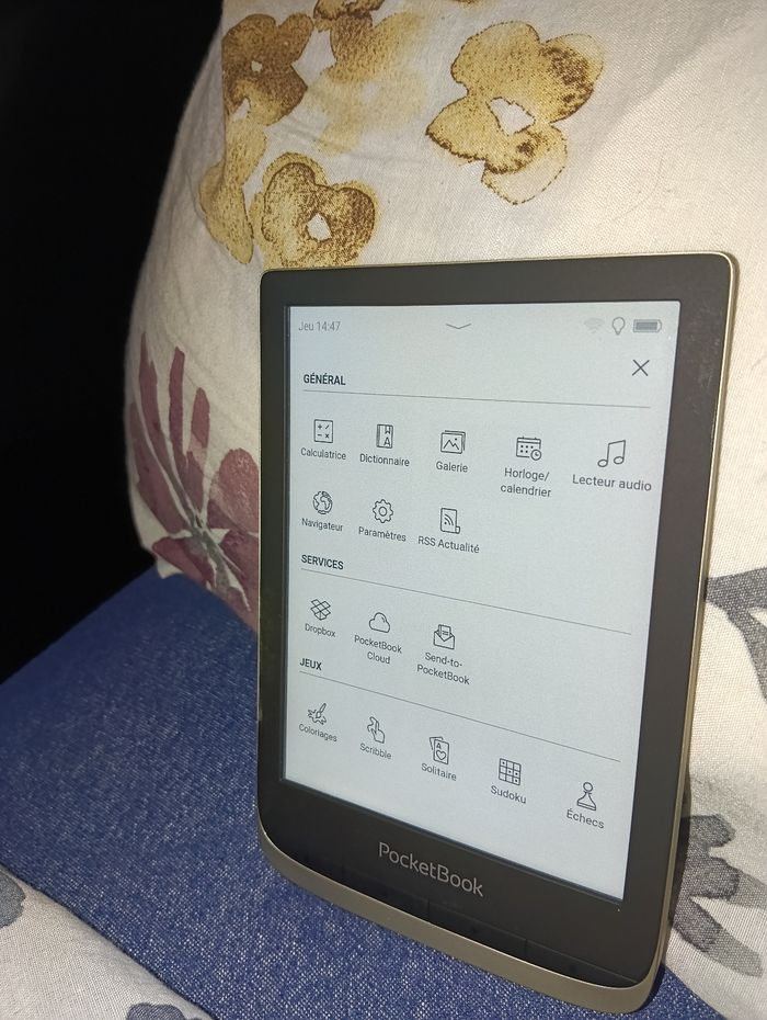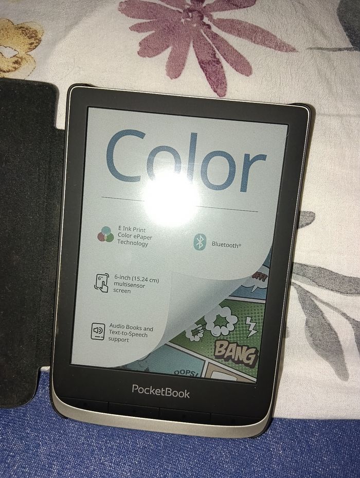 Liseuse pocketbook Color C'est l'équivalent de la Kobo clara colour Très bon état Avec sa pochette et son câble de recharge Elle a un port micro SD pour y ajouter encore + de livres 16go