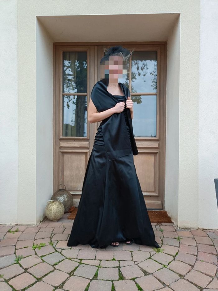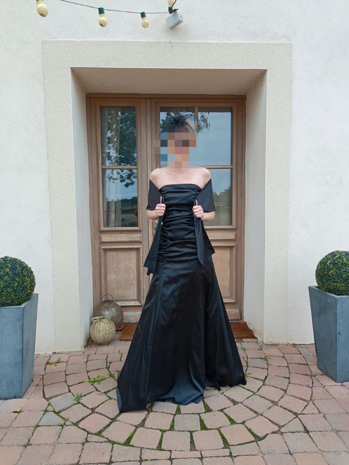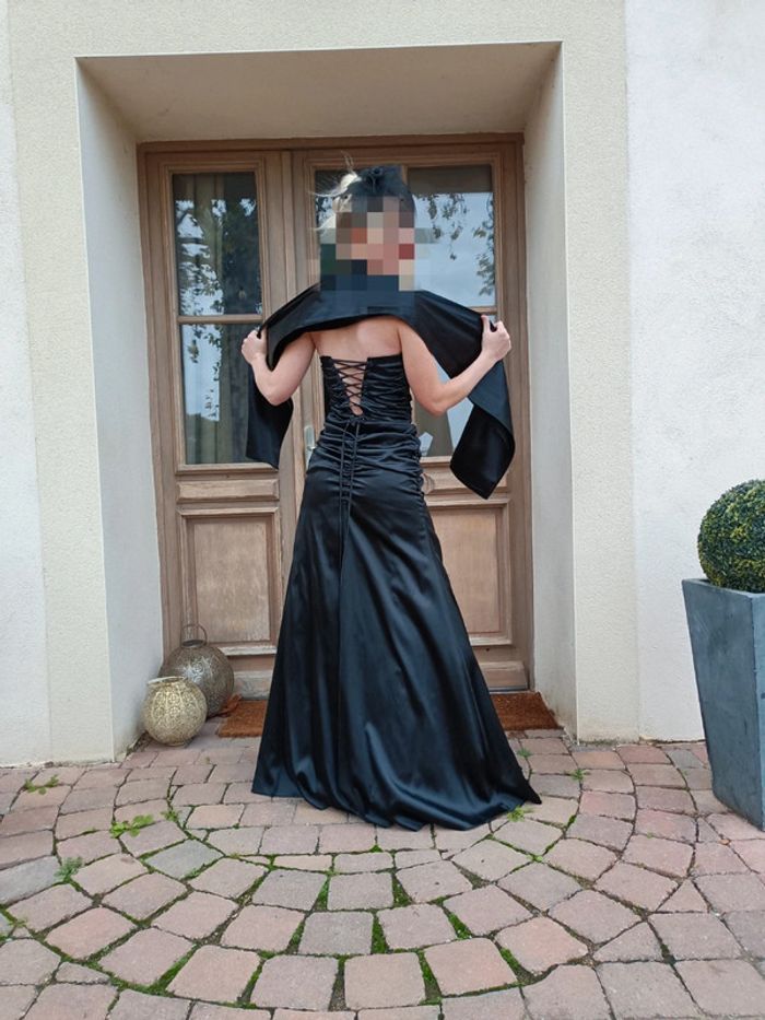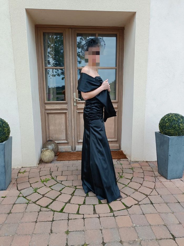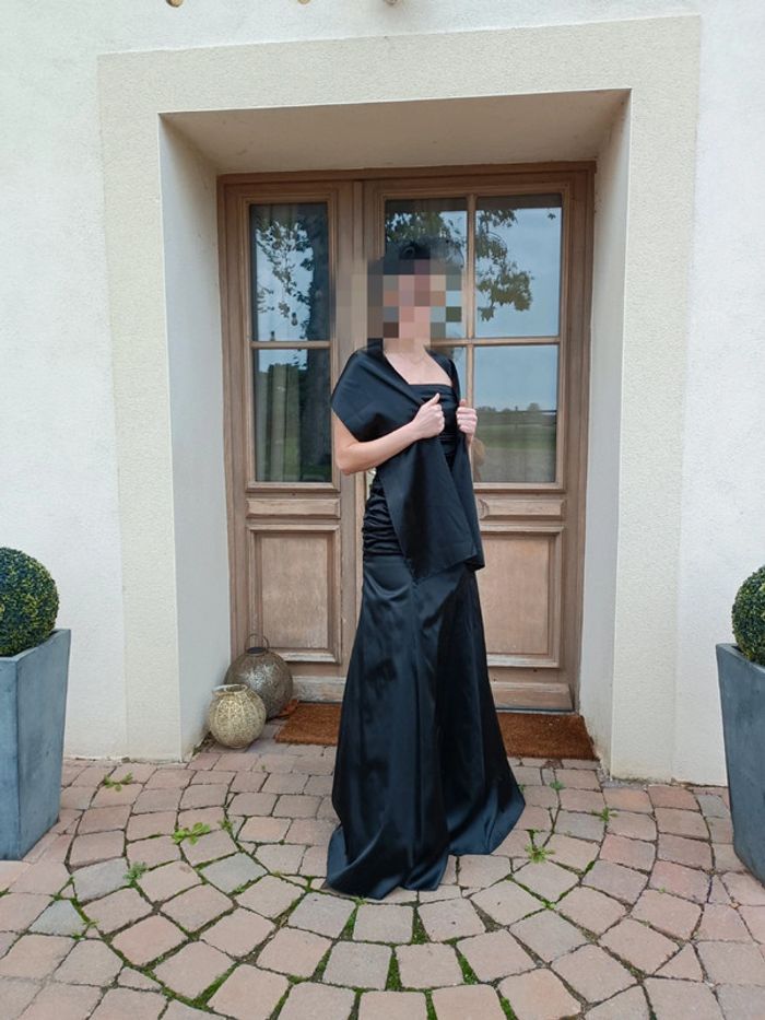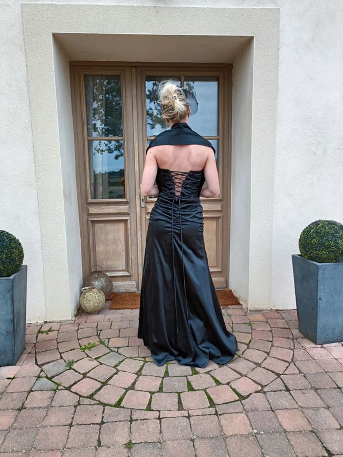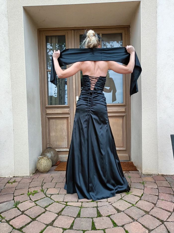 Jolie robe classe et chic Pour cérémonie et/ ou soirée Ou pour shooting photo Satiné Lacage dans le dos Mise une soirée Beau rendu Avec étole noir Taille S/M N'hésitez pas à regarder mon dressing et faire des lots pour profitez des frais de port 😁