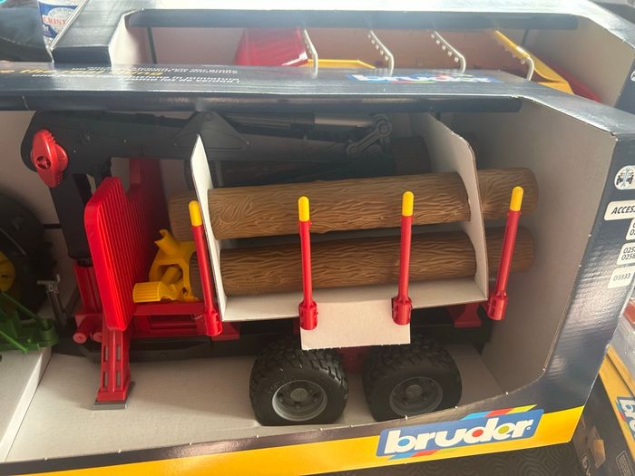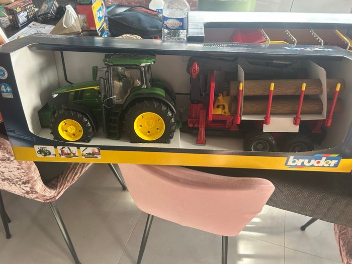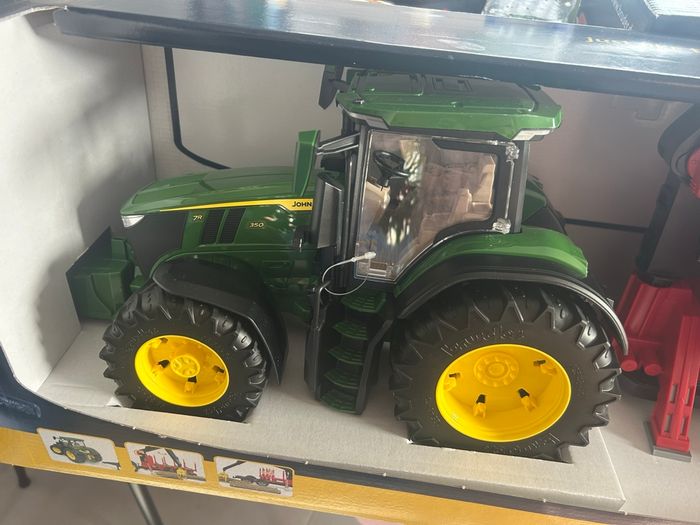 bruder 03154 - John Deere 7R 350 avec remorque à dos et 4 troncs d'arbre, Ferme, Tracteur, Transport de bois, Véhicule