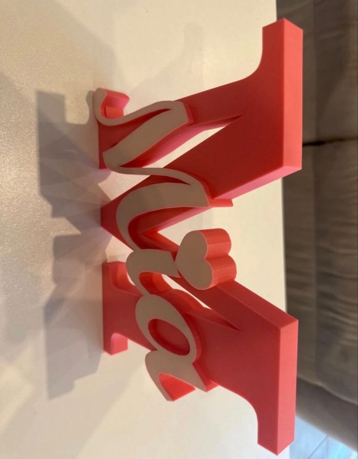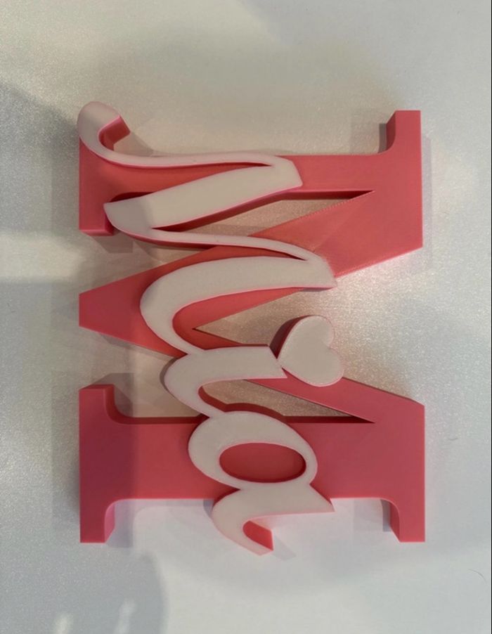 Prénom Mia en impression 3D Rose et blanc Matière PLA ( plastique biodégradable) Environs 20cm Plusieurs prénom et couleurs dispo😀
