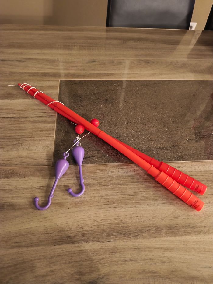 Bonjour je vends 2 cannes à pêche en plastique.