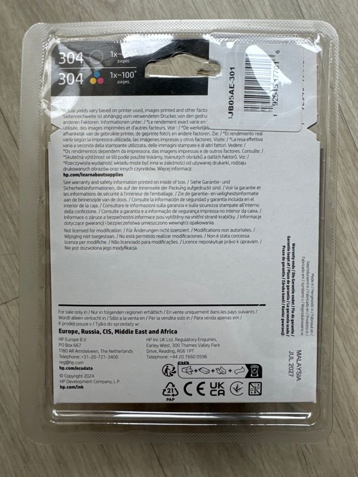 Cartouche d’encre HP 304 neuves Date de fin de garantie : 07/2027