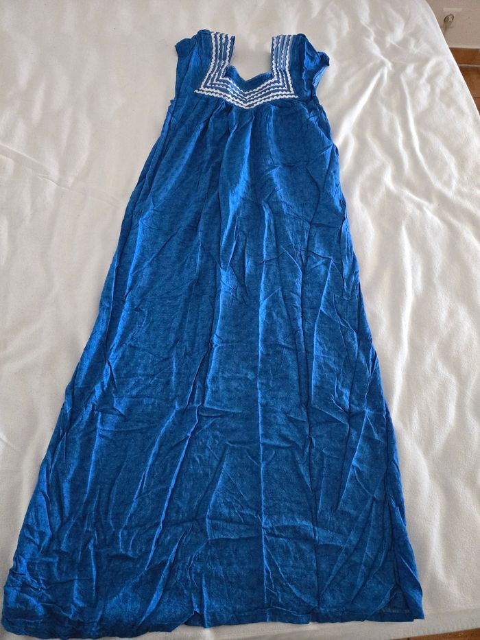 Je vends cette ravissante robe Kabile en taille unique de couleur bleu ciel. - Type de produit : Robe - Taille : Taille unique - Couleur : Bleu ciel - Caractéristiques : Encolure ornée de broderies blanches, Manches courtes N'hésitez pas à me contacter pour plus d'informations ou de photos.
