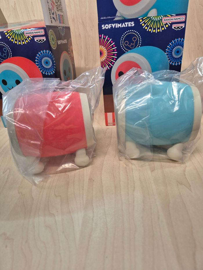 Set 2 figurine Sofvimates Taiko no Tatsujin : Wada Don & Katsu Wada. Plastique, environ 10.5 cm de haut pour 9 cm de long. En parfait état avec sa boîte d'origine en état correct. #chtaiko 🌸Les prix sont fixes, car ils intègrent les taxes auxquels les pros sont asujettis. Aucune offre ne sera acceptée qu'il s'agisse d'un lot ou d'un article à l'unité, merci. 🌸N'hésitez pas à vérifier la disponibilité de l'article avant de procéder à l'achat.