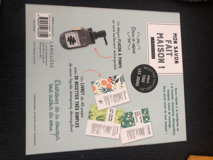 Coffret complet, juste ouvert . Pour créer son savon maison , diverses recettes de shampoing, savon liquide, démaquillant . Prix neuf 13,95€