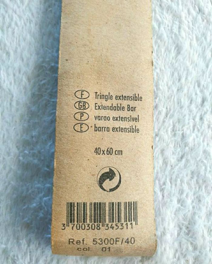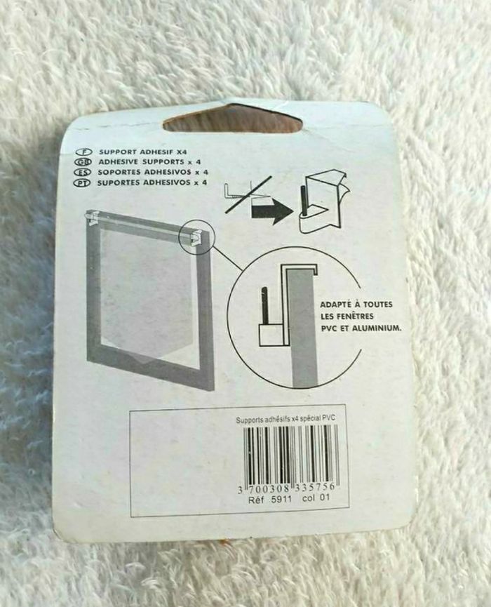 Ensemble de 2 tringles à rideaux neuves. Elles mesurent de 40 à 60cm. Et 4 supports adhesifs pour PVC et aluminium. Neufs. Les emballages sont un peu abîmés.