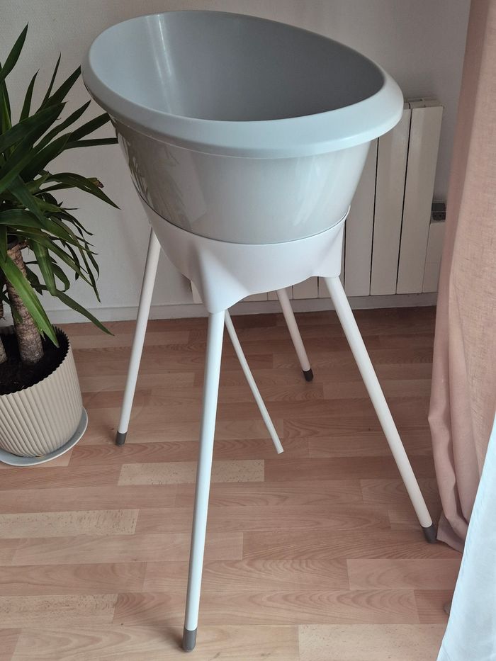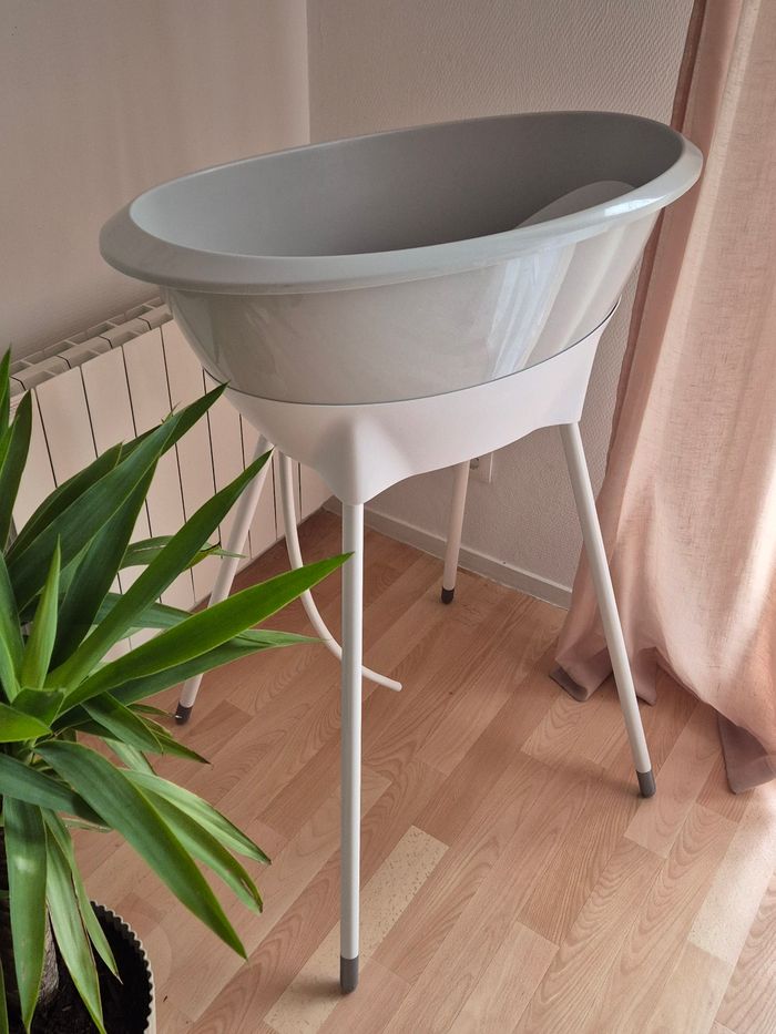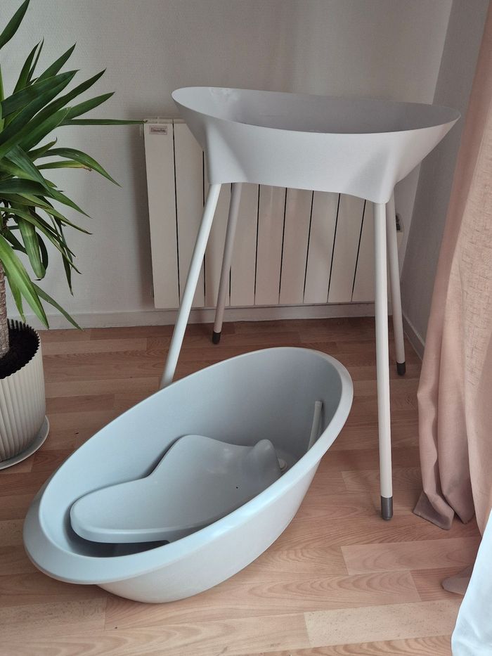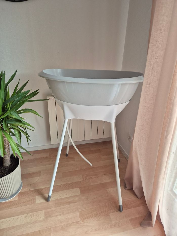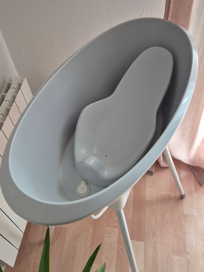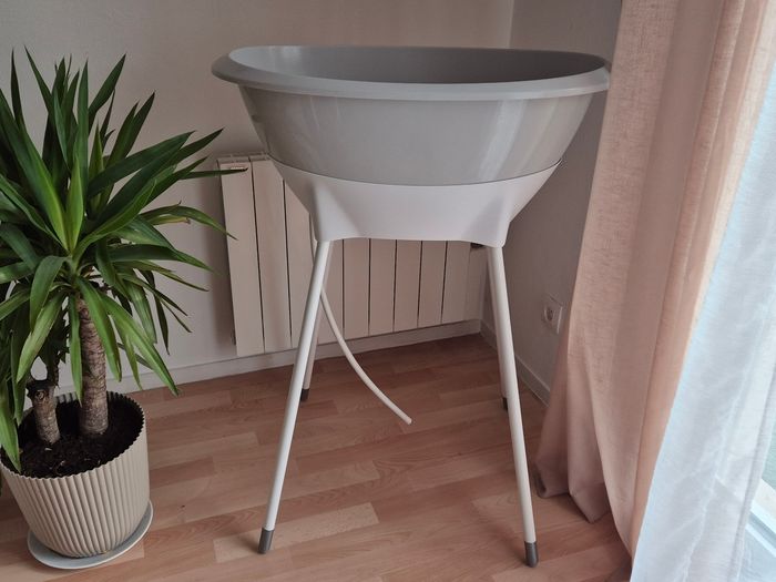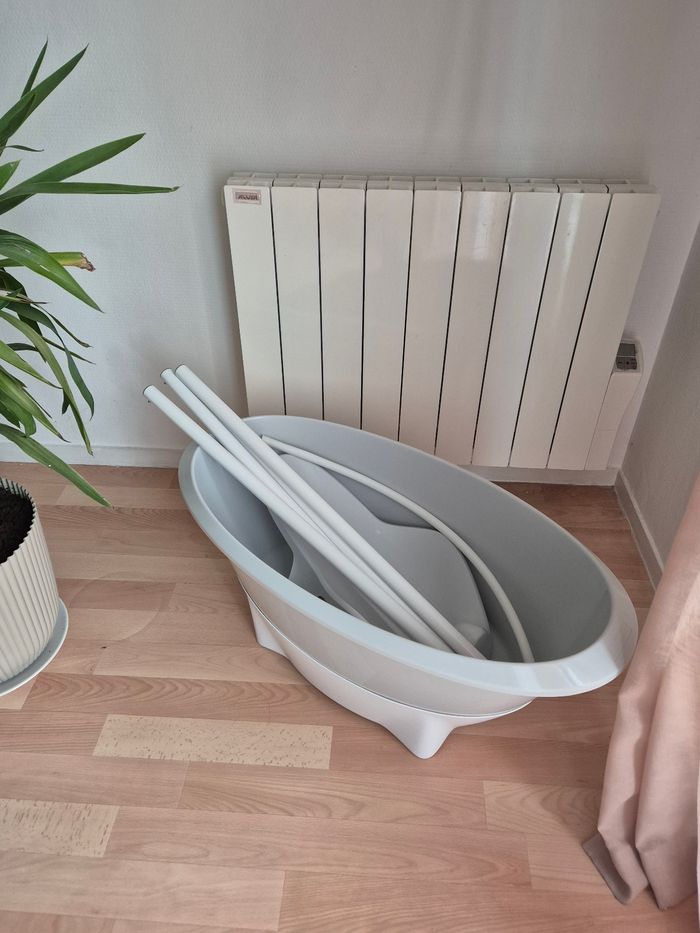 🚫 Doit impérativement partir par Chronopost pour des dimensions de colis 🚫 En super état, avec baignoire, pied, réducteur et tuyau de vidange La baignoire Luma + support de bain - Amande/Almond est l'ensemble de bain idéal pour les parents qui aiment un aspect doux et naturel à la maison. La couleur beige chaude "Amande" crée une atmosphère apaisante pendant le bain et s'intègre parfaitement dans les intérieurs modernes et classiques. Cet ensemble complet associe un design élégant à un confort fonctionnel et à la sécurité. La baignoire ergonomique pour bébé est conçue pour les tout-petits et offre un soutien optimal pendant le bain. Grâce à ses formes arrondies, votre bébé sera allongé confortablement et en toute sécurité. La baignoire est fabriquée en plastique durable, sans BPA, et est équipée d'un bouchon pratique qui permet à l'eau de s'écouler facilement. Sa surface lisse la rend facile et rapide à nettoyer. Le support de bain inclus élève la baignoire à une hauteur de travail confortable, ce qui vous permet d'allaiter votre enfant sans vous pencher, ce qui est bon pour votre dos et votre posture. Le système d'encliquetage robuste garantit que la baignoire reste en place en toute sécurité. Après utilisation, il suffit de déclipser les pieds, ce qui permet de ranger l'ensemble facilement et de manière compacte. Avec la baignoire Luma + support de bain - Amande/Almond, vous disposez d'une solution de bain élégante et pratique à la maison. Idéale pour un usage quotidien, elle a été conçue dans un souci de confort et d'esthétique. J'ai mis du ruban adhésif en bas des pieds pour éviter l’ecaillage de la peinture.