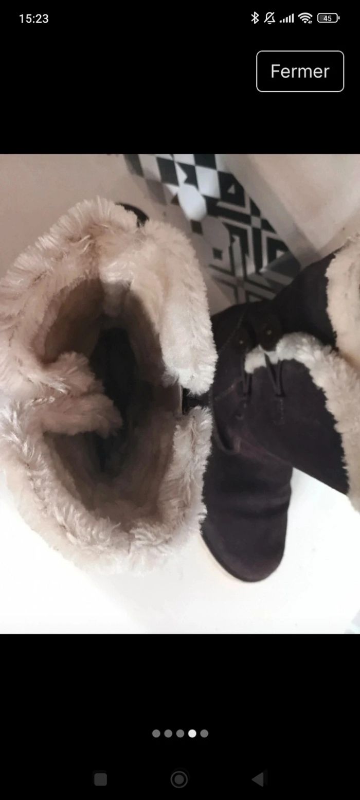 Très correct Bottes femme entièrement fourrées en daim couleur marron foncé