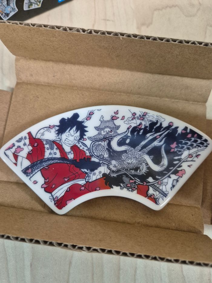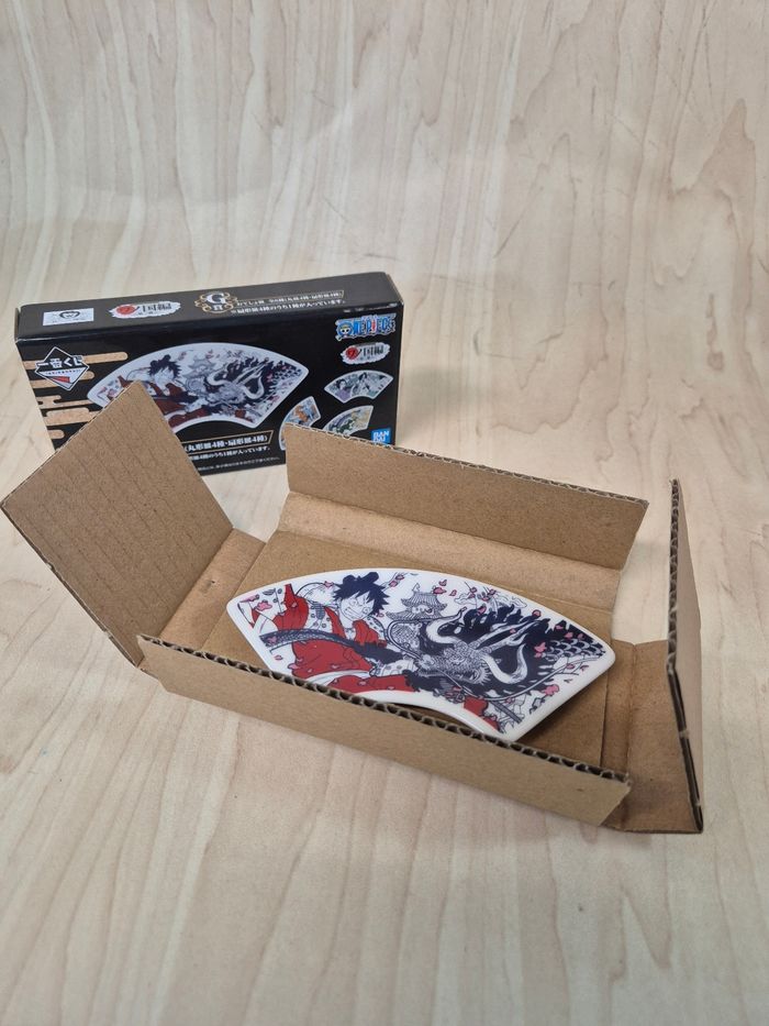 Mini assiette One Piece éventail Ichibankuji "Wa no Kuni" : Luffy & Kaido. Porcelaine, environ 12 cm. En excellent état avec sa boîte d'origine en état correct. Vendeur habitué aux envois fragiles. 🌸Les prix sont fixes, car ils intègrent les taxes auxquels les pros sont asujettis. Aucune offre ne sera acceptée qu'il s'agisse d'un lot ou d'un article à l'unité, merci. 🌸N'hésitez pas à vérifier la disponibilité de l'article avant de procéder à l'achat.