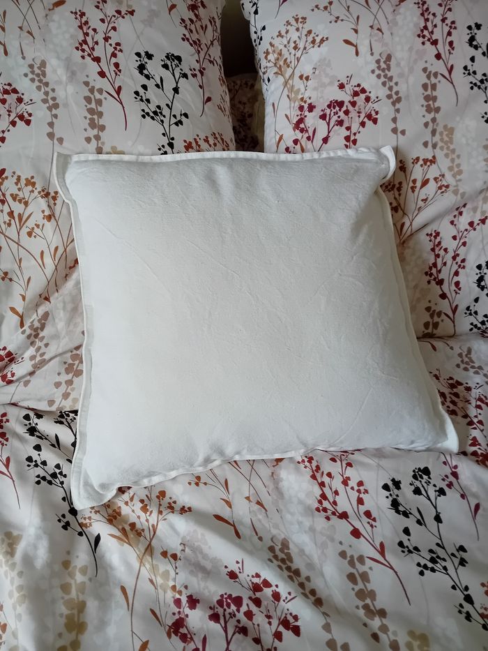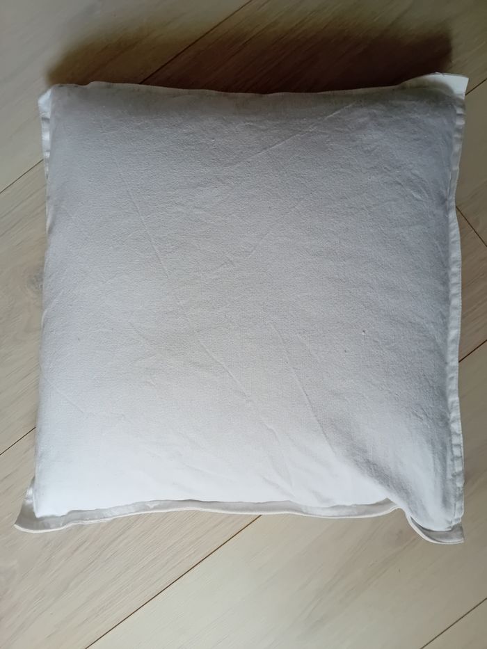 Vend coussin blanc dehoussable avec fermeture éclair.