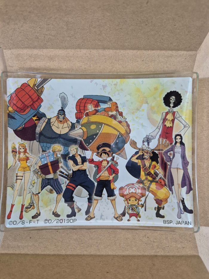 Mini assiette One Piece Ichibankuji "Stampede": Mugiwara Crew. Verre, environ 9 x 11 cm. En excellent état avec sa boîte d'origine en état correct. Vendeur habitué aux envois fragiles. 🌸Les prix sont fixes, car ils intègrent les taxes auxquels les pros sont asujettis. Aucune offre ne sera acceptée qu'il s'agisse d'un lot ou d'un article à l'unité, merci. 🌸N'hésitez pas à vérifier la disponibilité de l'article avant de procéder à l'achat.