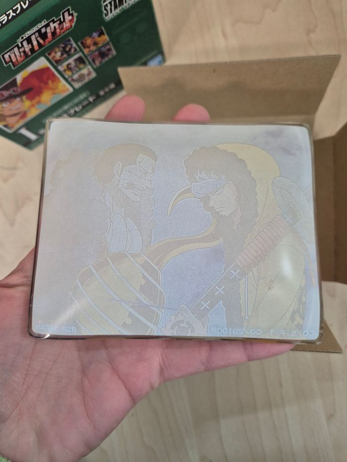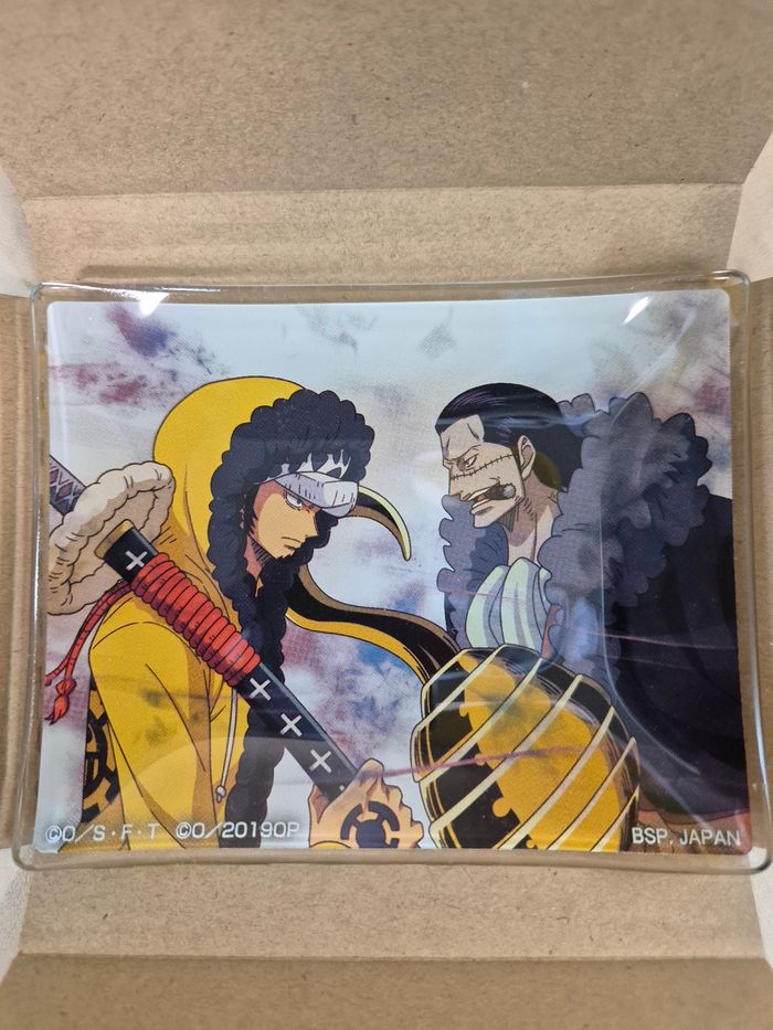 Mini assiette One Piece Ichibankuji "Stampede" : Trafalgar Law Vs Crocodile. Verre, environ 9 x 11 cm. En excellent état avec sa boîte d'origine en état correct. Vendeur habitué aux envois fragiles. 🌸Les prix sont fixes, car ils intègrent les taxes auxquels les pros sont asujettis. Aucune offre ne sera acceptée qu'il s'agisse d'un lot ou d'un article à l'unité, merci. 🌸N'hésitez pas à vérifier la disponibilité de l'article avant de procéder à l'achat.