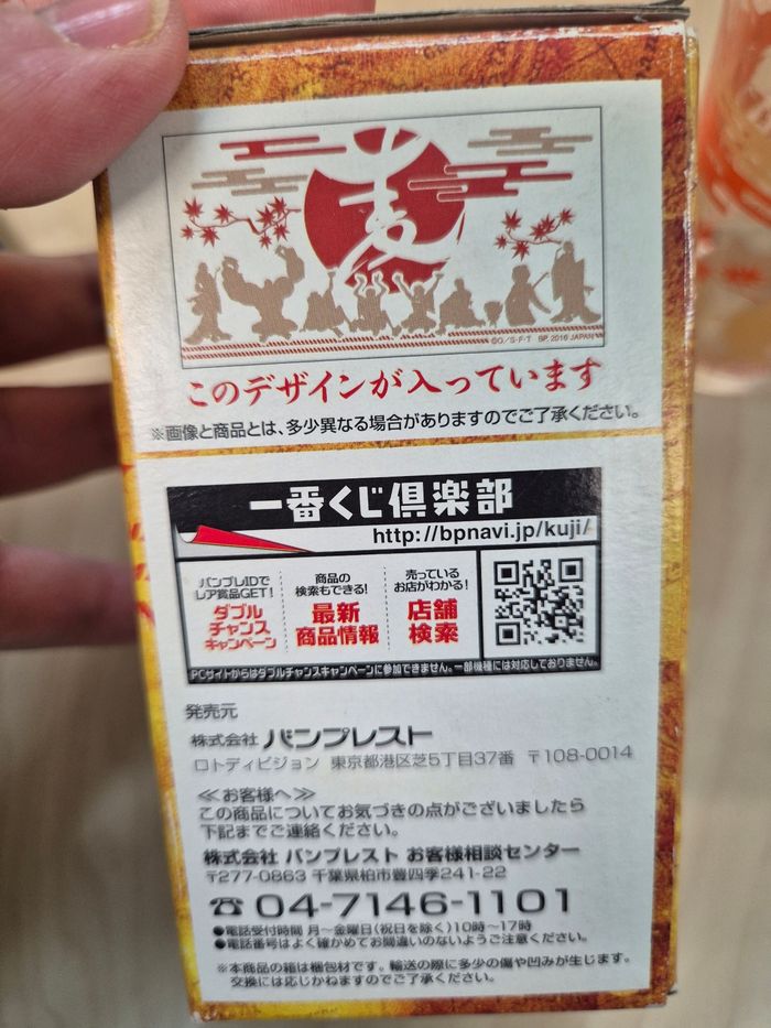 Verre One Piece Ichibankuji "Ade iro Mugiwara". Verre, environ 11.5 cm de haut, en excellent état avec sa boîte d'origine en état correct. Vendeur habitué aux envois fragiles. 🌸Les prix sont fixes, car ils intègrent les taxes auxquels les pros sont asujettis. Aucune offre ne sera acceptée qu'il s'agisse d'un lot ou d'un article à l'unité, merci. 🌸N'hésitez pas à vérifier la disponibilité de l'article avant de procéder à l'achat.
