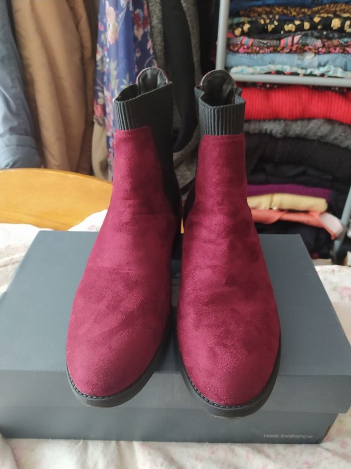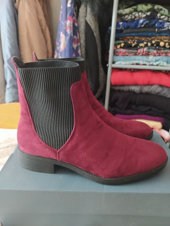 Bottines en daim bordeaux de la marque Eram taille 40 portées une fois parfait état