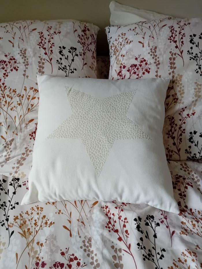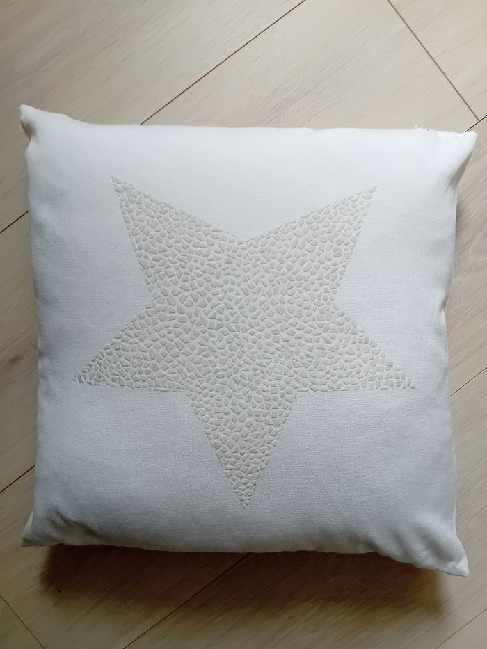 Vend coussin blanc avec motif étoile. Dehoussable avec fermeture éclair De chez alinea