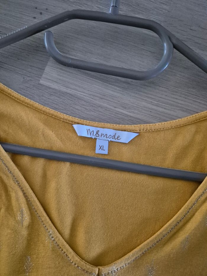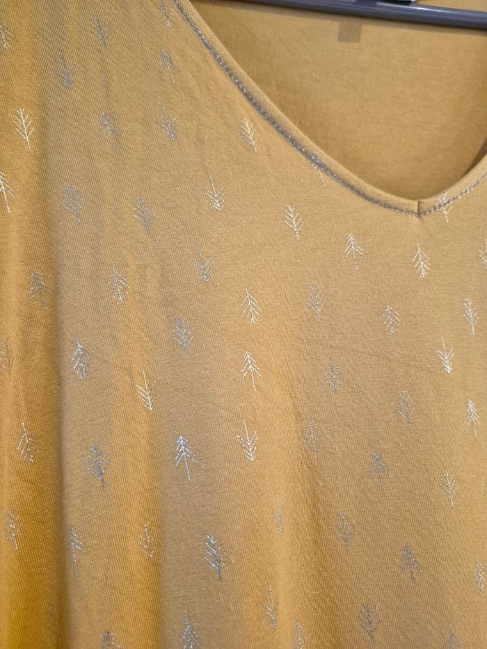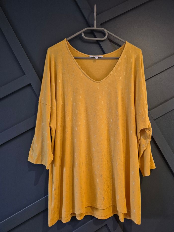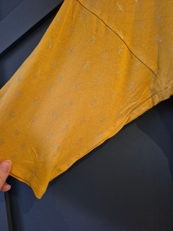 Couleur : jaune moutarde Taille XL Très bon état Largeur d'épaules : Xcm (s'adapte) Longueur : 69cm Manches 3/4