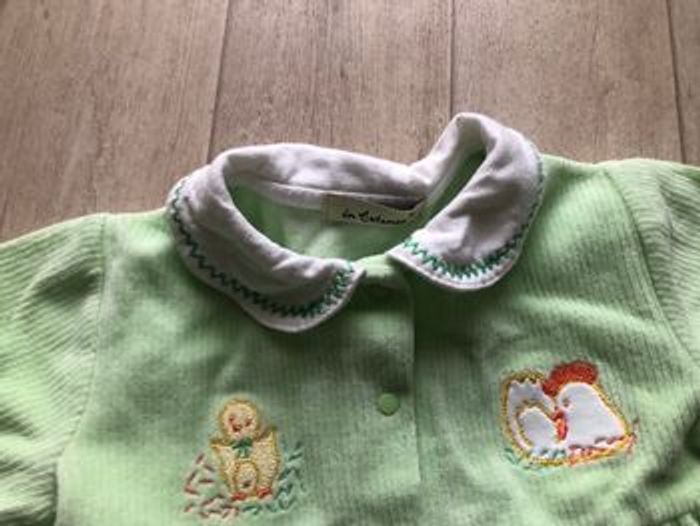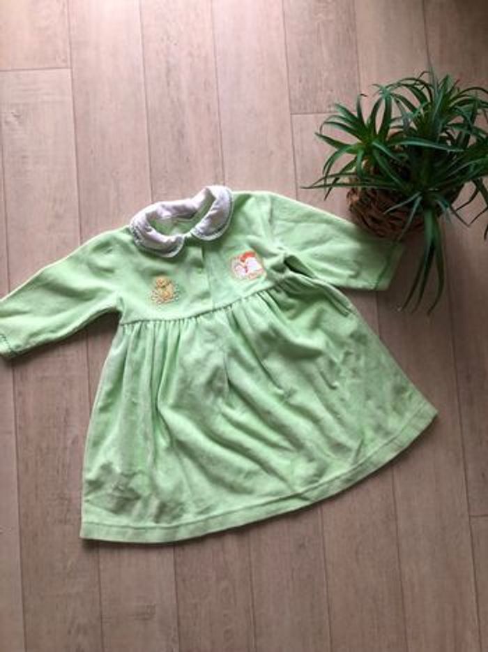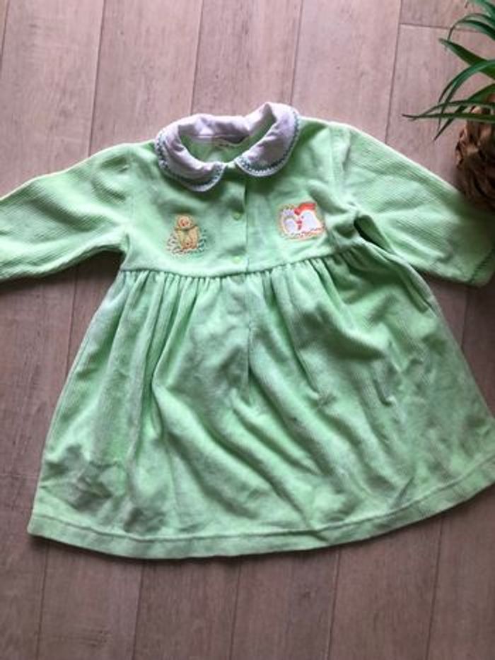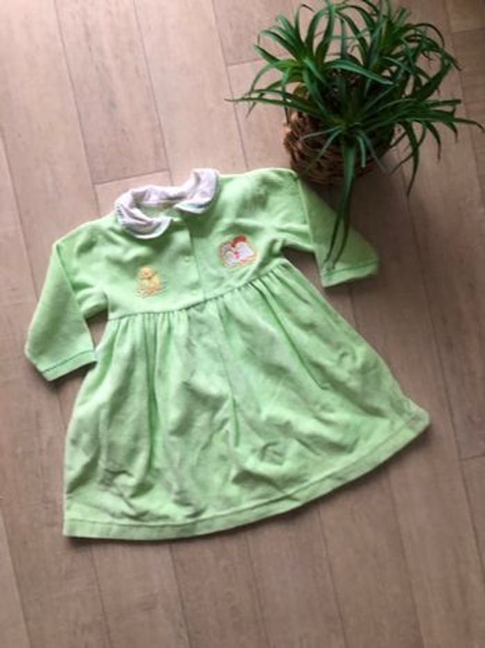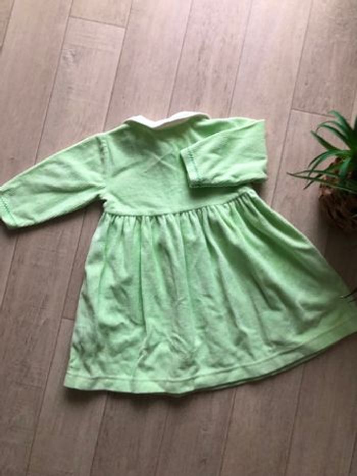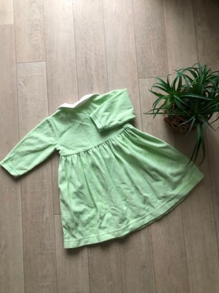 Robe vert anis col Claudine blanc en très bon état. Taille 6 mois.