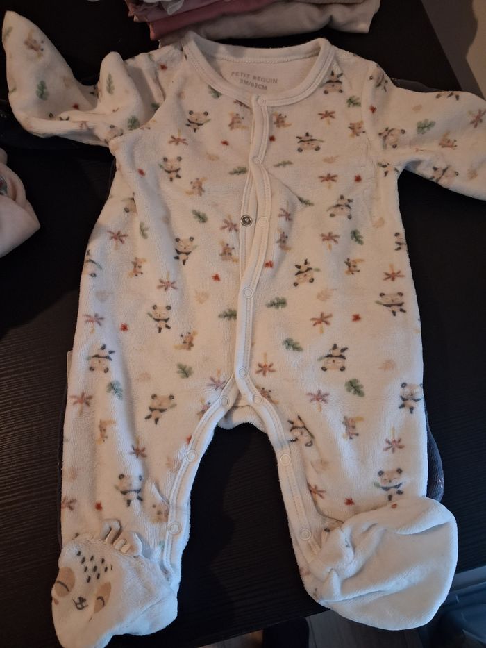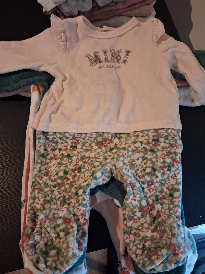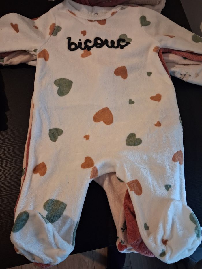 7 pyjamas velours, 3 mois 5 sont neufs, 2 en très bon état