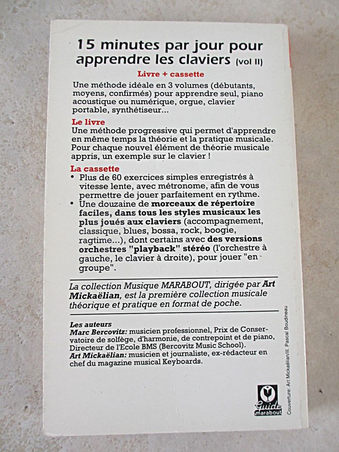 Livre 15 min par jour pour apprendre les claviers – Volume 2 (moyens) – Collection guides marabout 288 pages. Edition de 1993. Très bon état (mais la cassette n’est pas présente).
