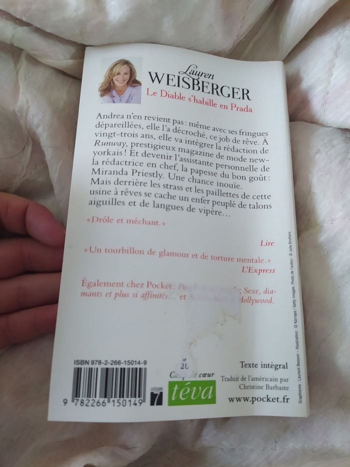 Livre de poche Le diable s'habille en Prada de Lauren Weisberger Légère pliure du livre mais les pages sont intactes et cela n'empêche pas la lecture du livre