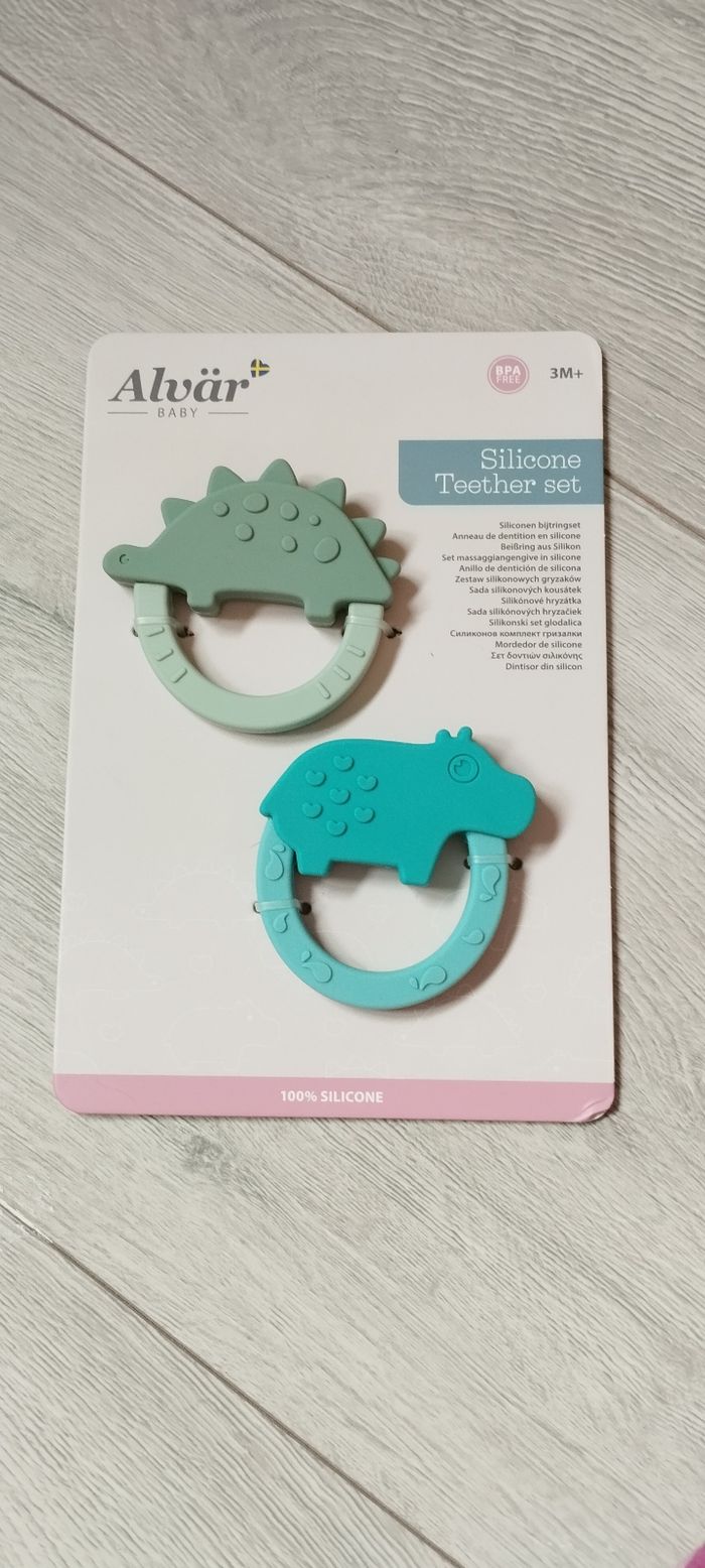 Bonjour, Je vends ce lot de deux anneaux de dentition de la marque alvar neuf dans l'emballage