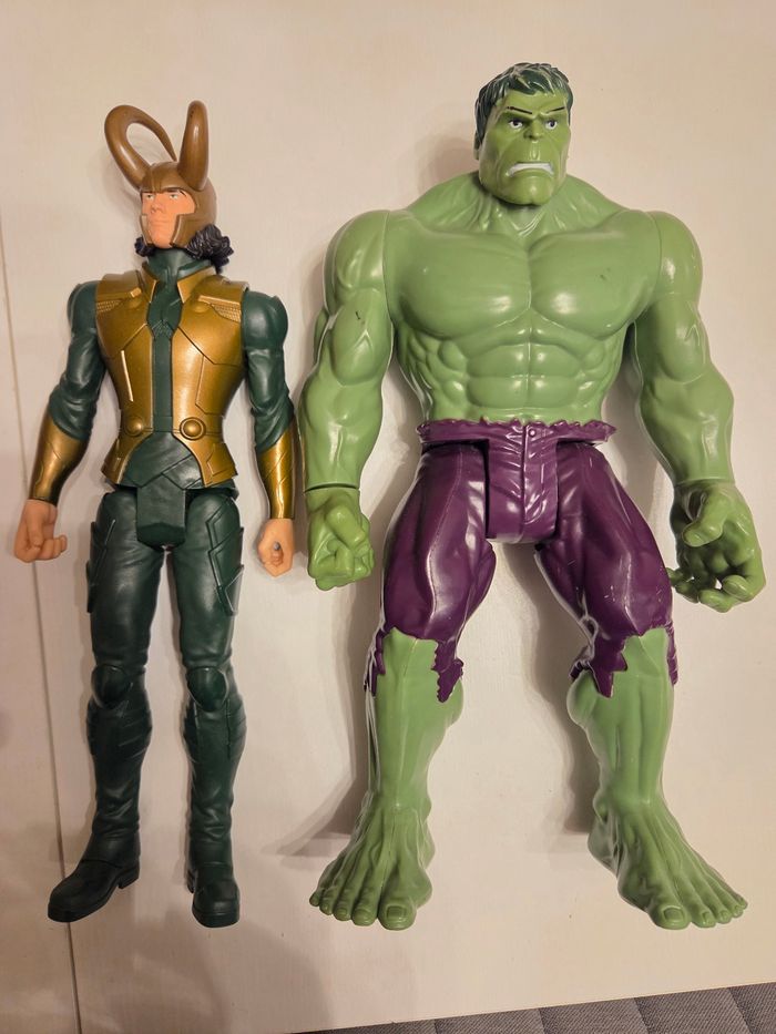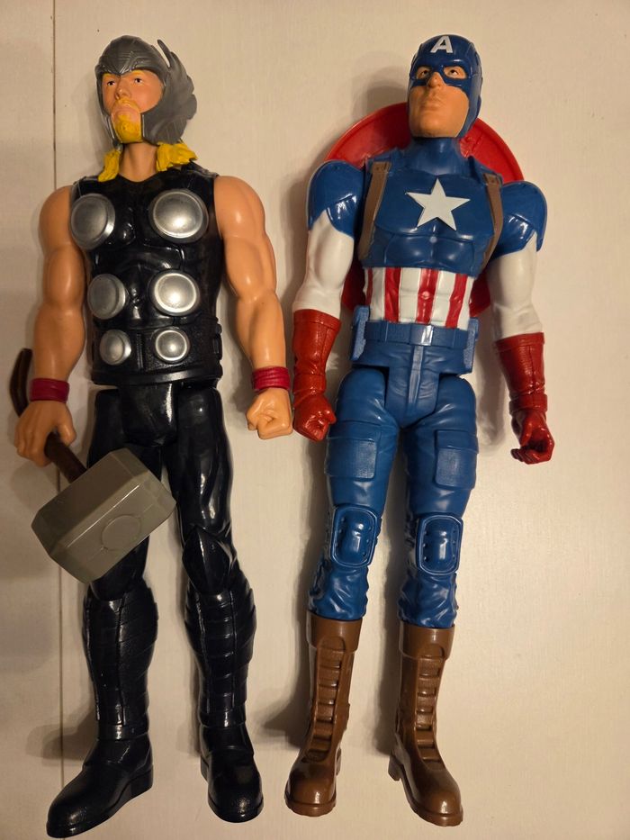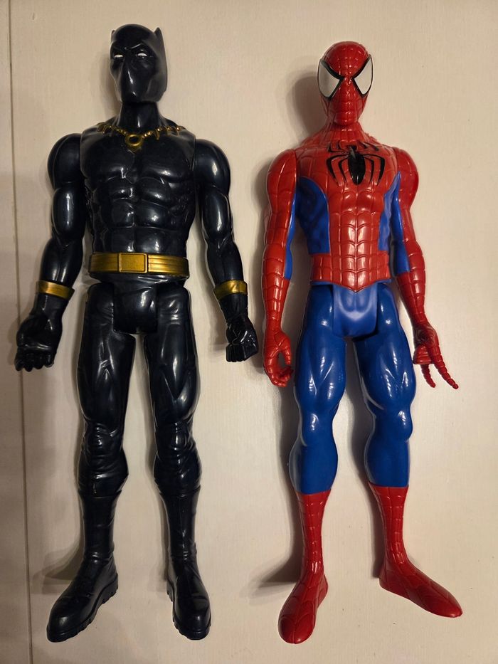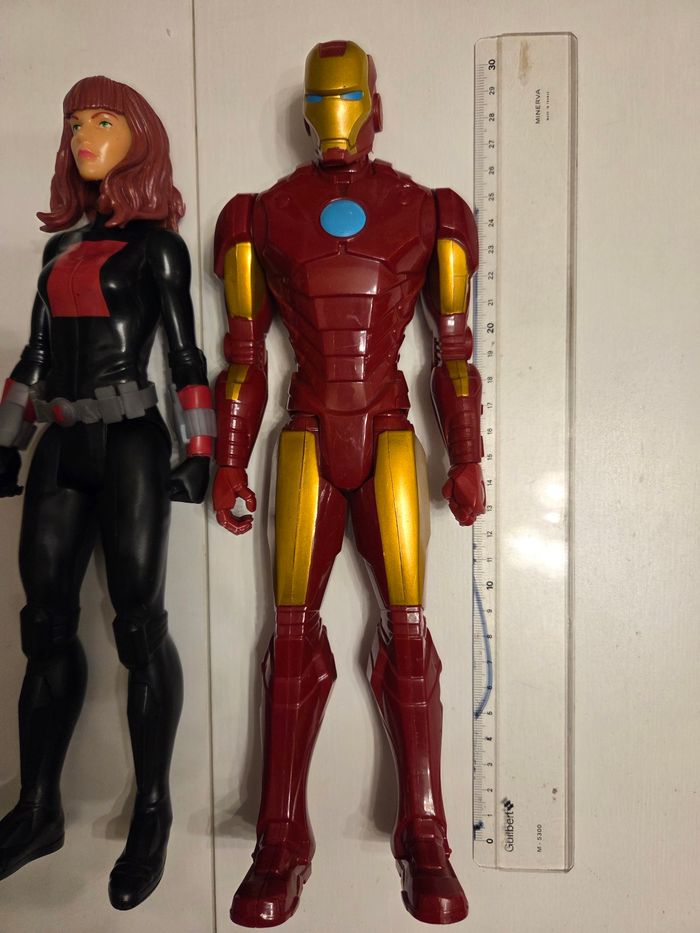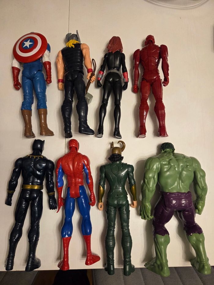 Lot de 8 figurines marvel taille 30cm plutôt bon état. Seul Hulk à quelques traces à l'arrière. Captain America, Thor, Black Widow, Iron man, Black panthère, Spider man, Loki, Hulk