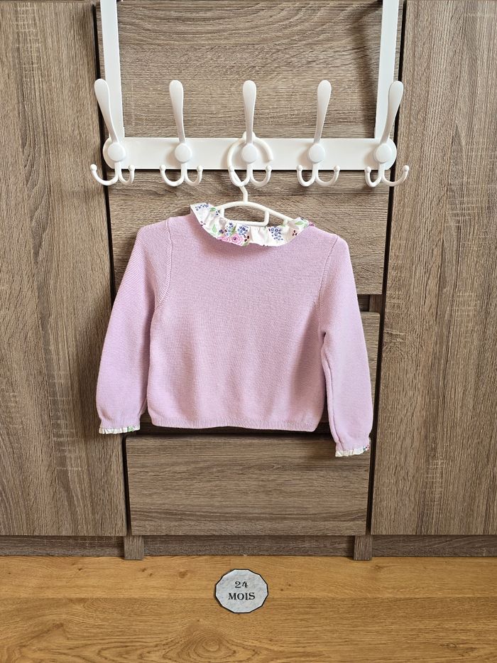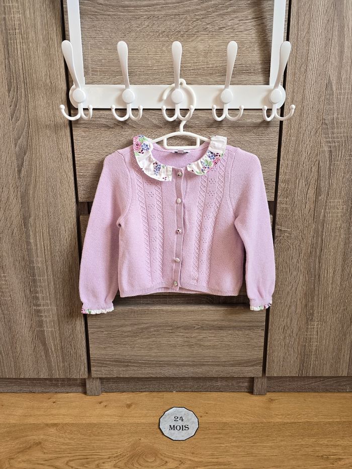 Lien direct vers les tailles équivalentes dans mon dressing : #fdhsarah24mois #fdhsarahSGMJ 📜 Ensemble comprenant 4 pièces : - Body écru côtelé à Col satin brodé. Ref : KAFAUSTINE - Robe chasuble écrue aux motifs fleuris rose, bleu et vert. Détails de dentelle sur le buste. Noeud à l'arrière. Accompagnée de son bloomer. REF : KAFRANCOISE - Gilet/ Cardigan en tricot ajoure. Couleur parme chine. Poignet et col en satin. Ref : KAFANNY Collection : Cérémonie Taille 📏 : 24 mois 86 cm État 🔍 : Très bon état Marque 🏷️ : Sergent Major Je suis disponible pour toutes questions ou photos supplémentaires. 📦 L’envoi se fait le plus rapidement possible Bon Shopping #fdhxxx24xxx