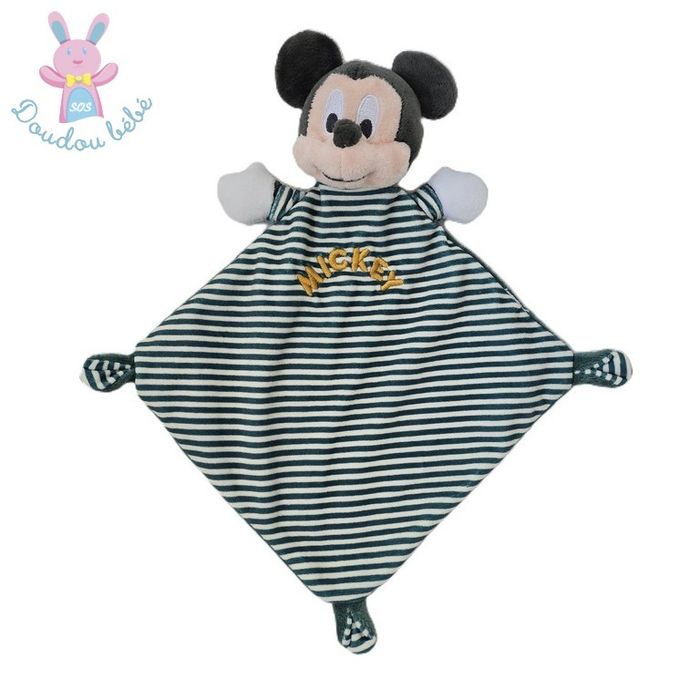 BOUTIQUE PRO SOS DOUDOU BEBE (+ de 3000 doudous en stock) ---------------------------------- Doudou plat Souris Mickey velours tout doux rayé vert et blanc DISNEY (réf DIS-224) Occasion très bon état (étiquette marque coupée)