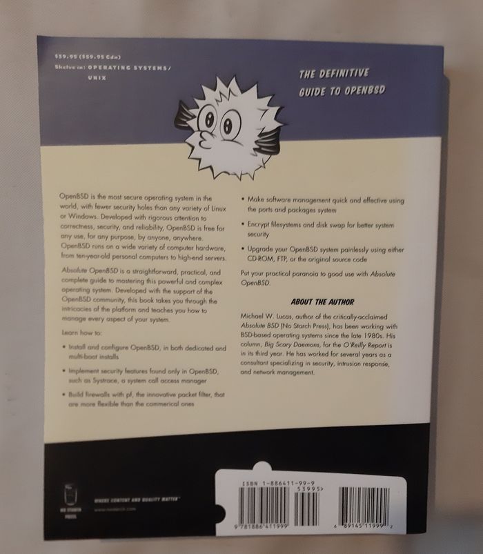 - Titre : Absolute OpenBSD : UNIX for the Practical Paranoid - Auteur : Michael W. Lucas - Langue : Anglais - Format : Broché Très bon état 📦 Envoi possible. 🛍 Remise en main propre possible dans le secteur de Pont-Audemer, Beuzeville, Epaignes, Pont-L'évêque. 🏷 jusqu'à 15 % de réduction pour l'achat de plusieurs articles