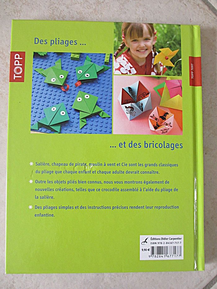 Livre origamis « Chapeau de pirate, moulin à vent & Cie » - Editions Didier Charpentier 64 pages. Très bon état (la couverture est juste un peu abîmée au dos).