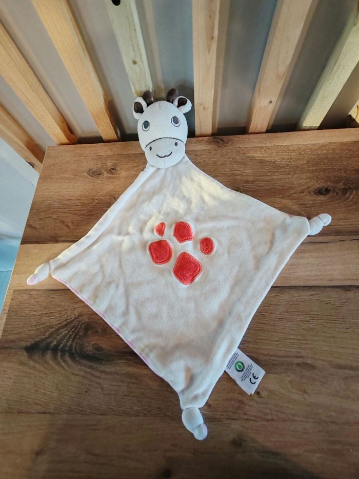 FRUGI Doudou girafe en coton bio Une face beige Une face rayé rose 12.90 euros Envoi en relais