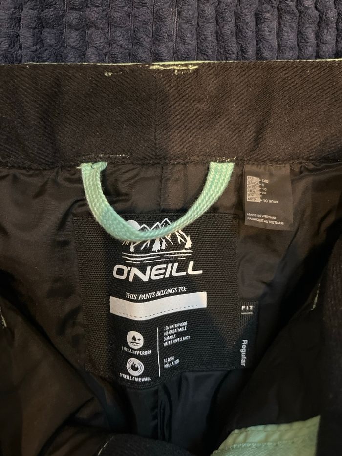 Pantalon de ski O’Neill - 10 ans - 140cm Couleur turquoise / vert d’eau Très bon état Réglable à la taille 2 poches fermées par zip