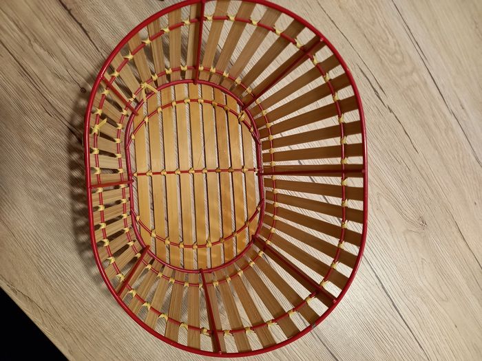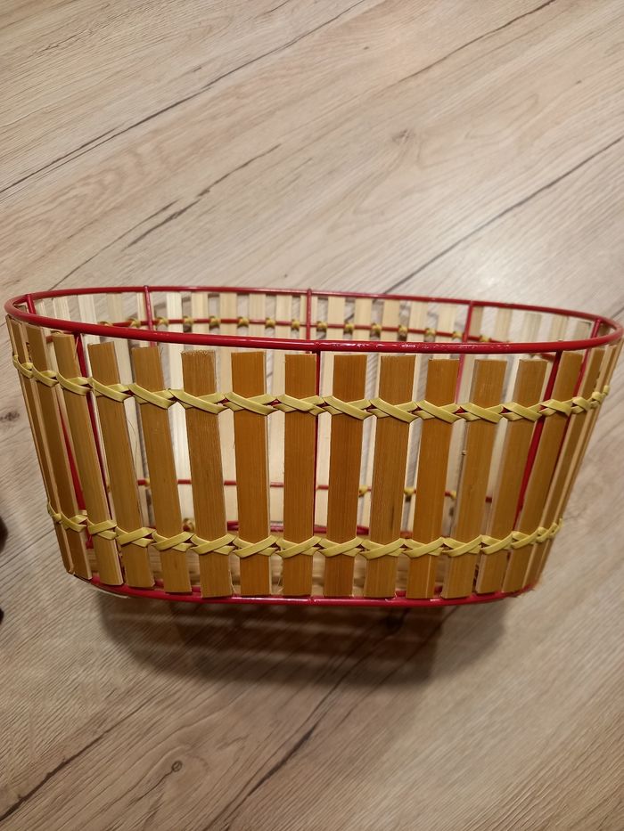 Panier métal/bois Très bon état, 1 petit éclat de peinture (photo) Taille 28x21x12 cm (Note perso : carton 2)