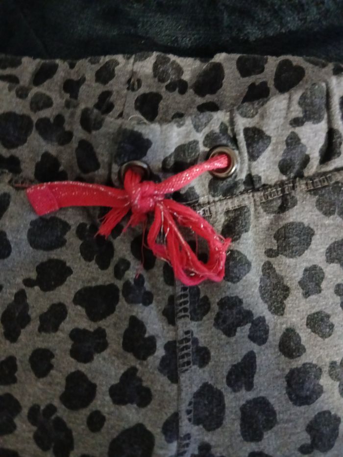 Jogging fille 4ans, gris et noir ,taille réglable grâce au cordon rose un côté s'enfile,2 poches.