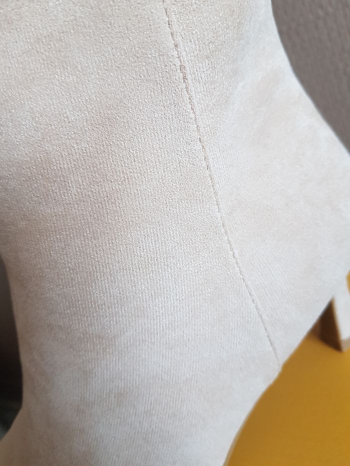 Bottines neuves, jamais portées. Coloris beige clair, élégant et facile à assortir. Pointure : 39 Matière : aspect daim / suédine Bout : pointu Talon fin et stable (hauteur moyenne) Fermeture : zip latéral Style chic et féminin, idéal pour le quotidien comme pour une tenue habillée Vendues avec la boîte d’origine.