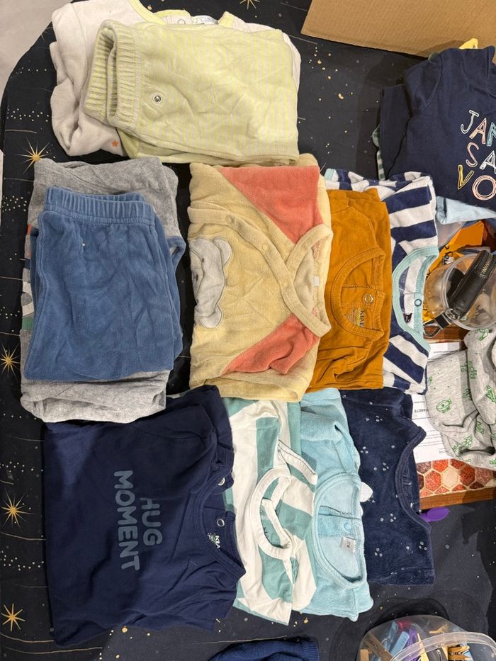 En bon état 10€ le lot Certains dessins sur les pyjamas sont un peu abîmé mais ne gêne en rien leur utilisation. 12 mois Plusieurs marques