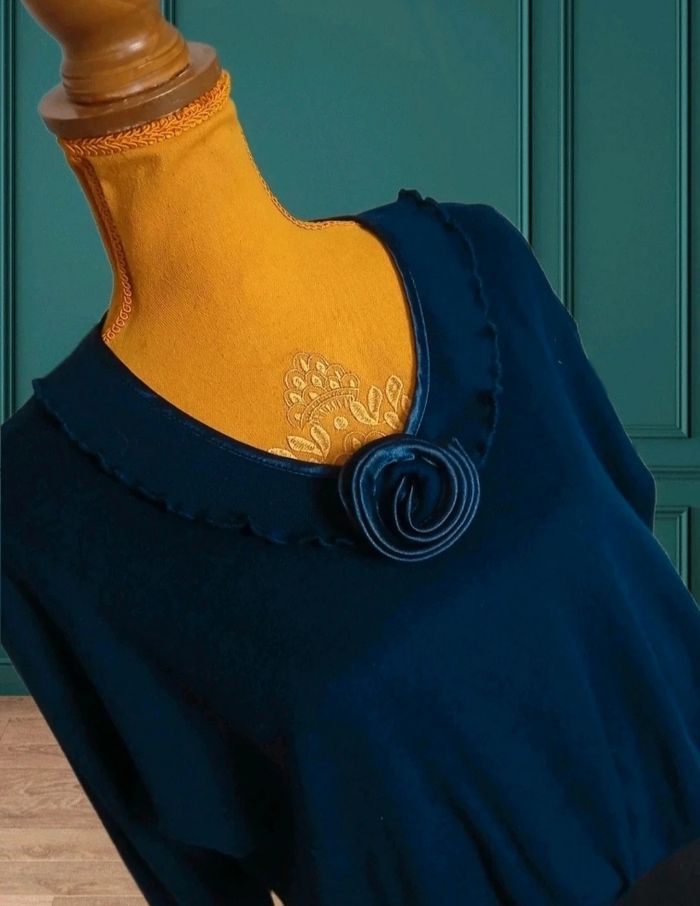 Joli pull rétro avec sa rose en tissu sur le devant Aisselle 57cm Parfait état