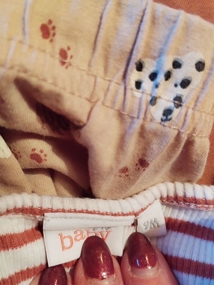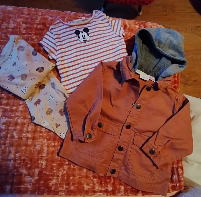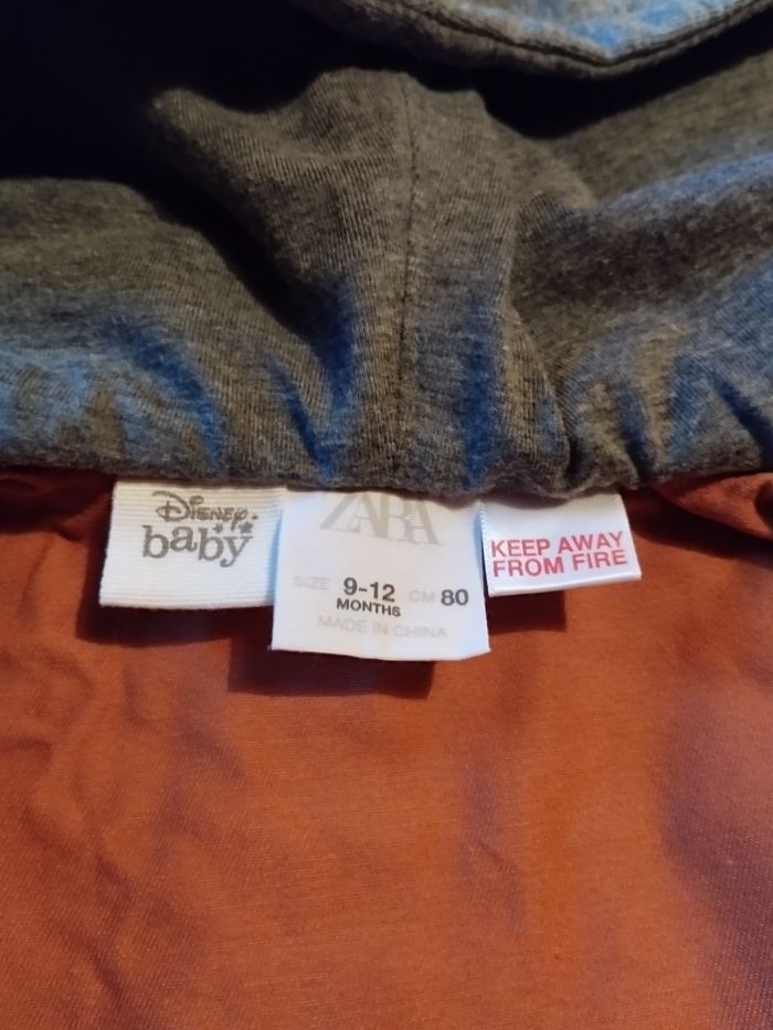 Lot vareuse terracotta capuche doublée Disney baby Zara + pyjama Zeeman+ tee shirt rayé écru terracotta Disney baby 9 mois