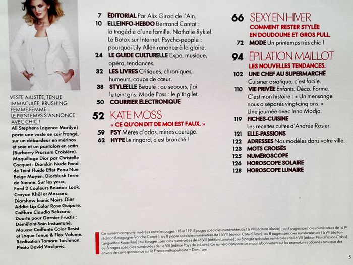 Magazine Elle n°3342 janvier 2010 spécial Ali Stephens - photo numéro 5