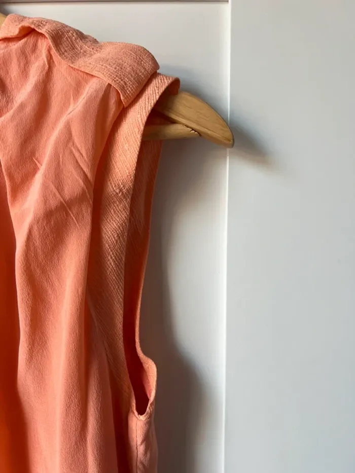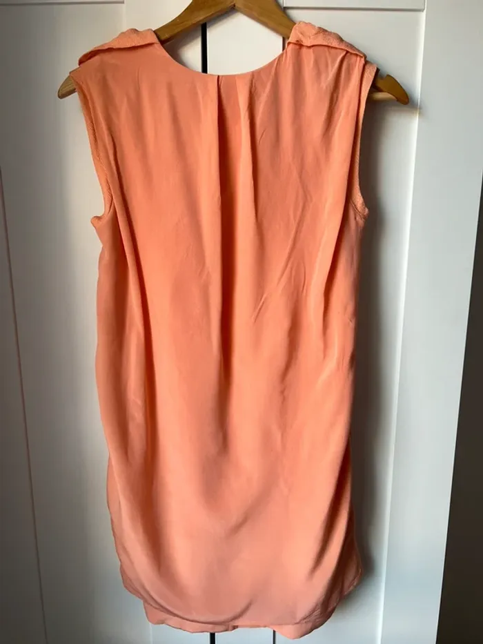 Une très belle robe avec des détails très chics et soignés : manches, col avec clips 100% soie : légère , fluide et très agréable à porter Doublure de qualité Utilisée une fois pour une cérémonie Taille 1
