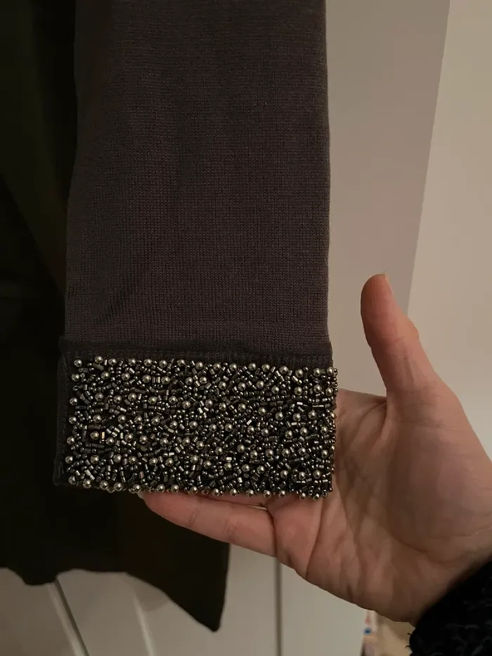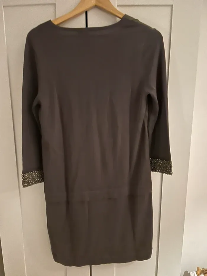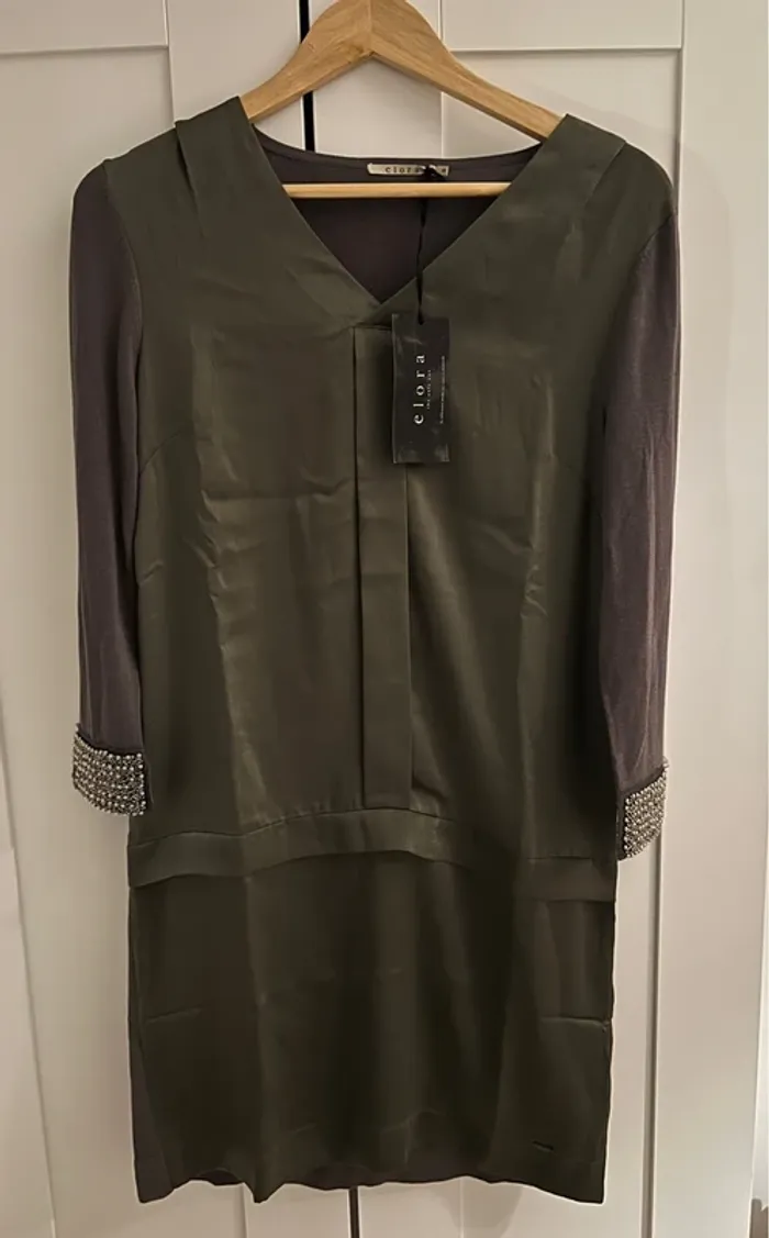 Robe bi matière Elora Robe très chic avec perles sur les manches et effet satiné Neuve valeur 99 euros Taille 0 : 34 voire petit 36 Mesures : . Épaule à épaule : 42 - 43 cm . Taille (au niveau du ruban ) : 48 cm