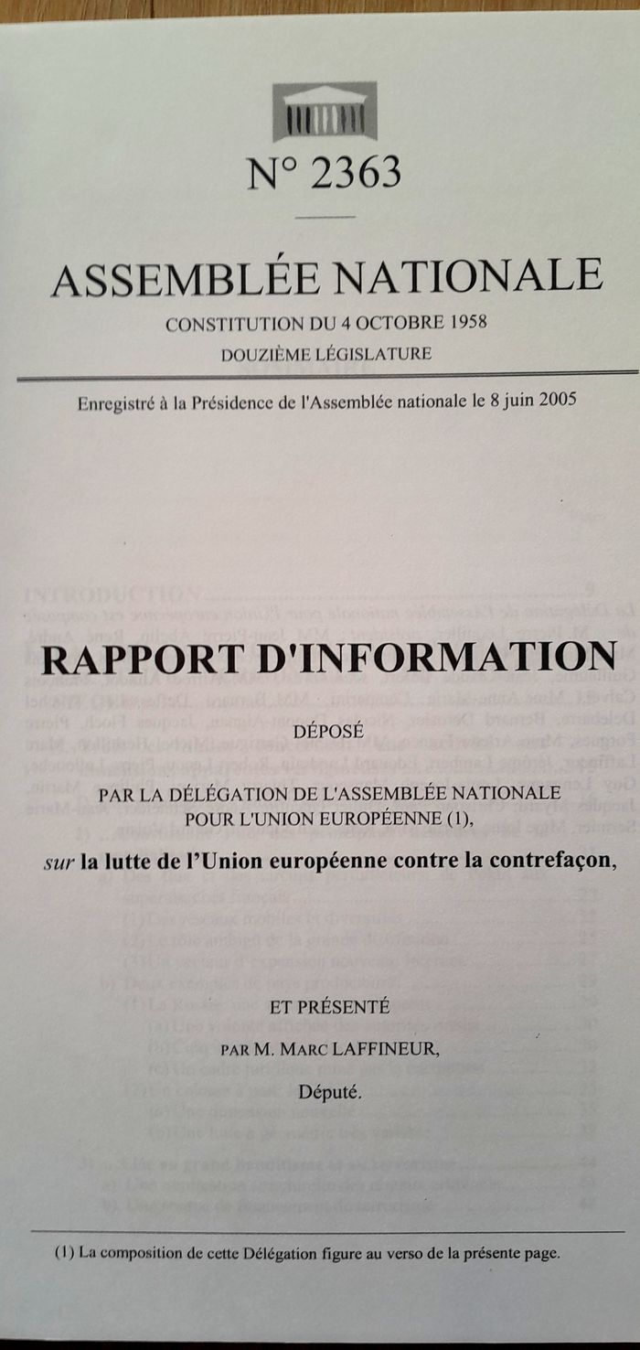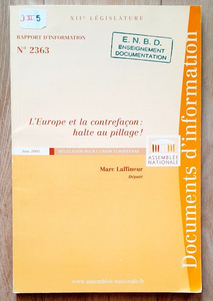 l'Europe et la contrefaçon : halte au pillage - marc laffineur juin 2005 - photo numéro 2