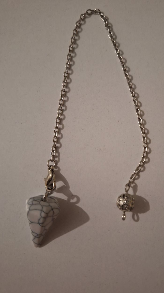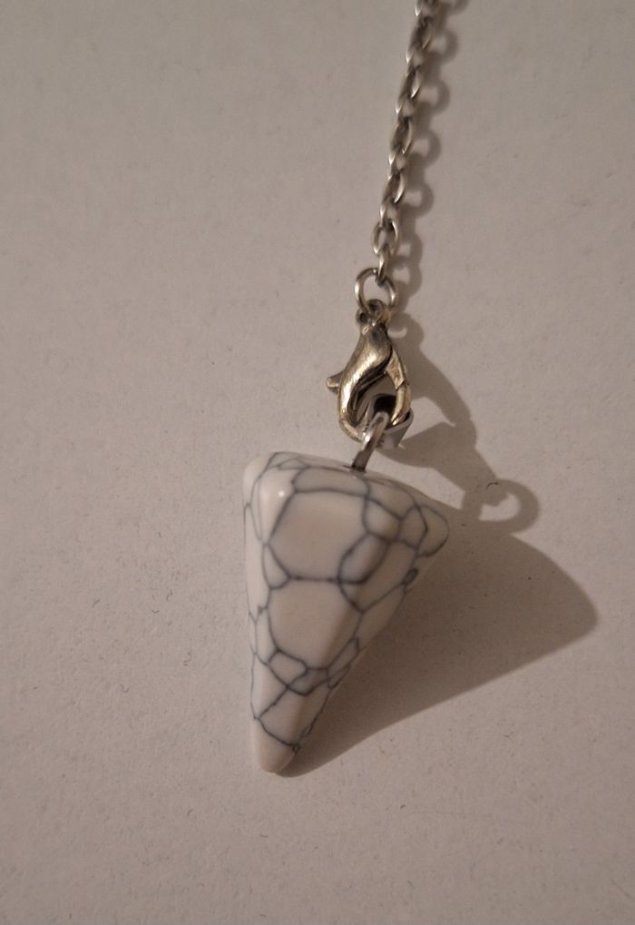 Chaîne argentée avec un pendule conique en howlite - photo numéro 1