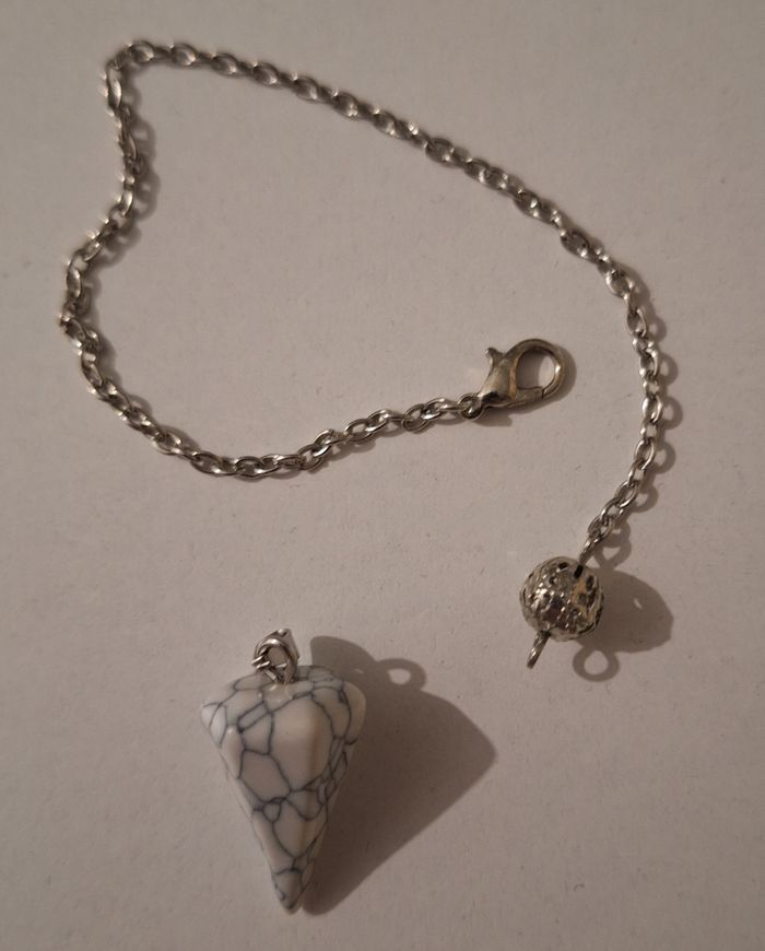 Chaîne argentée avec un pendule conique en howlite - photo numéro 3