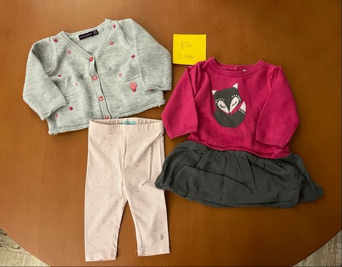 Bonjour, A vendre ensemble 3 pièces taille 3 mois Plusieurs marques Sergent Major, Obaïbi : 5€ Ils ont été portés, voir les photos. Mis sur d’autres groupes de vente Regardez dans mon dressing j’ai des vêtements garçon du 3 mois à 10 ans Et des vêtements fille de la naissance à 4 ans