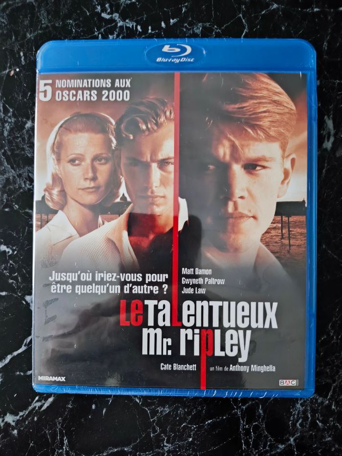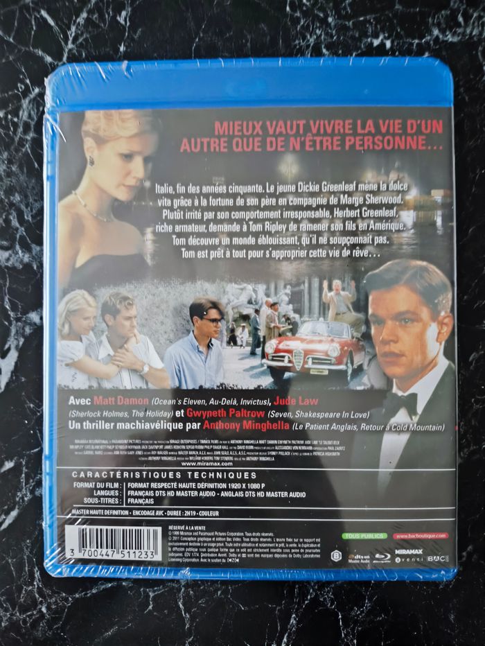 Film Le Talentueux Mr Ripley (1999 - The Talented Mr. Ripley) neuf encore sous blister. Thriller et Drame d’Anthony Minghella avec Matt Damon, Jude Law, Gwyneth Paltrow, Cate Blanchett et Philip Seymour Hoffman. Plusieurs autres films (DVD et blu-ray) et séries télé disponibles sur mon dressing. Si vous avez des questions ou souhaitez plus de photos, n'hésitez pas à me demander. Prix négociable seulement si vous achetez plusieurs articles. N'hésitez pas à créer un lot et à faire une proposition raisonnable et à me demander un prix. Tag de recherche : #neboo_video #neboo_bluray #neboo_film blu ray bluray langue français française French FR