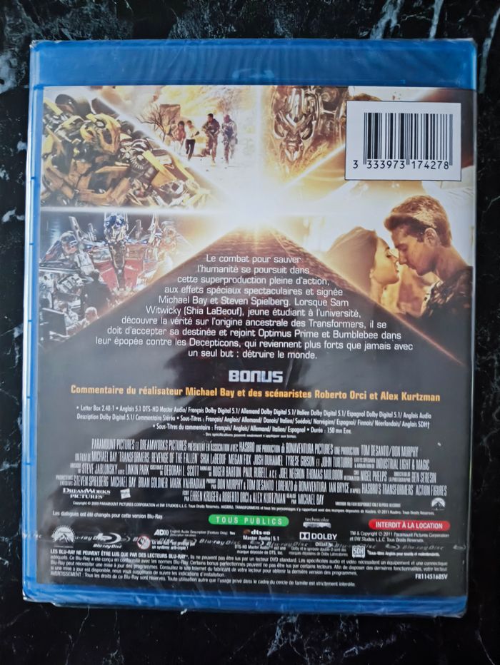 Film Transformers 2 : La Revanche (2009 - Revenge of the Fallen) neuf encore sous blister. Action, Science-fiction et Aventure de Michael Bay avec Shia LaBeouf, Megan Fox, Josh Duhamel, Tyrese Gibson et John Turturro. Plusieurs autres films (DVD et blu-ray) et séries télé disponibles sur mon dressing. Si vous avez des questions ou souhaitez plus de photos, n'hésitez pas à me demander. Prix négociable seulement si vous achetez plusieurs articles. N'hésitez pas à créer un lot et à faire une proposition raisonnable et à me demander un prix. Tag de recherche : #neboo_video #neboo_bluray #neboo_film blu ray bluray langue français française French FR