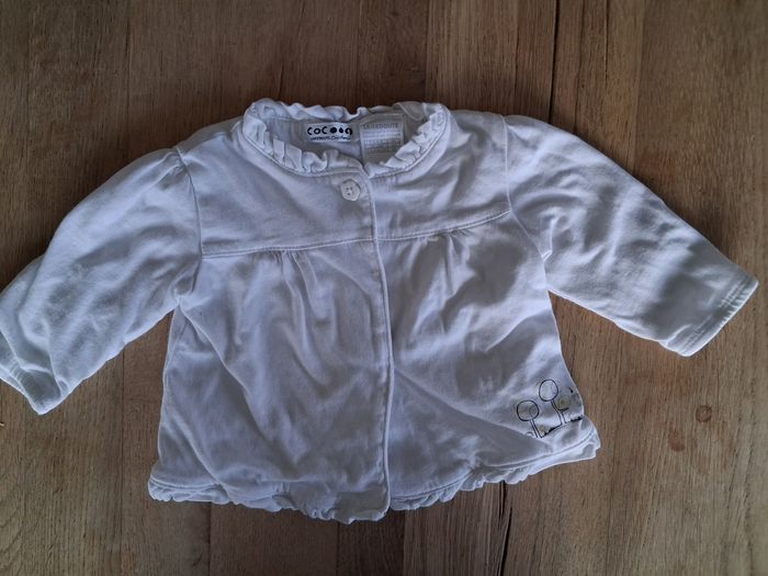 Gilet fille Cocoon 3 mois 60cm Blanc Motifs Boutons pressions cachés État comme neuf Remis en main propre sur Dax Envoi possible